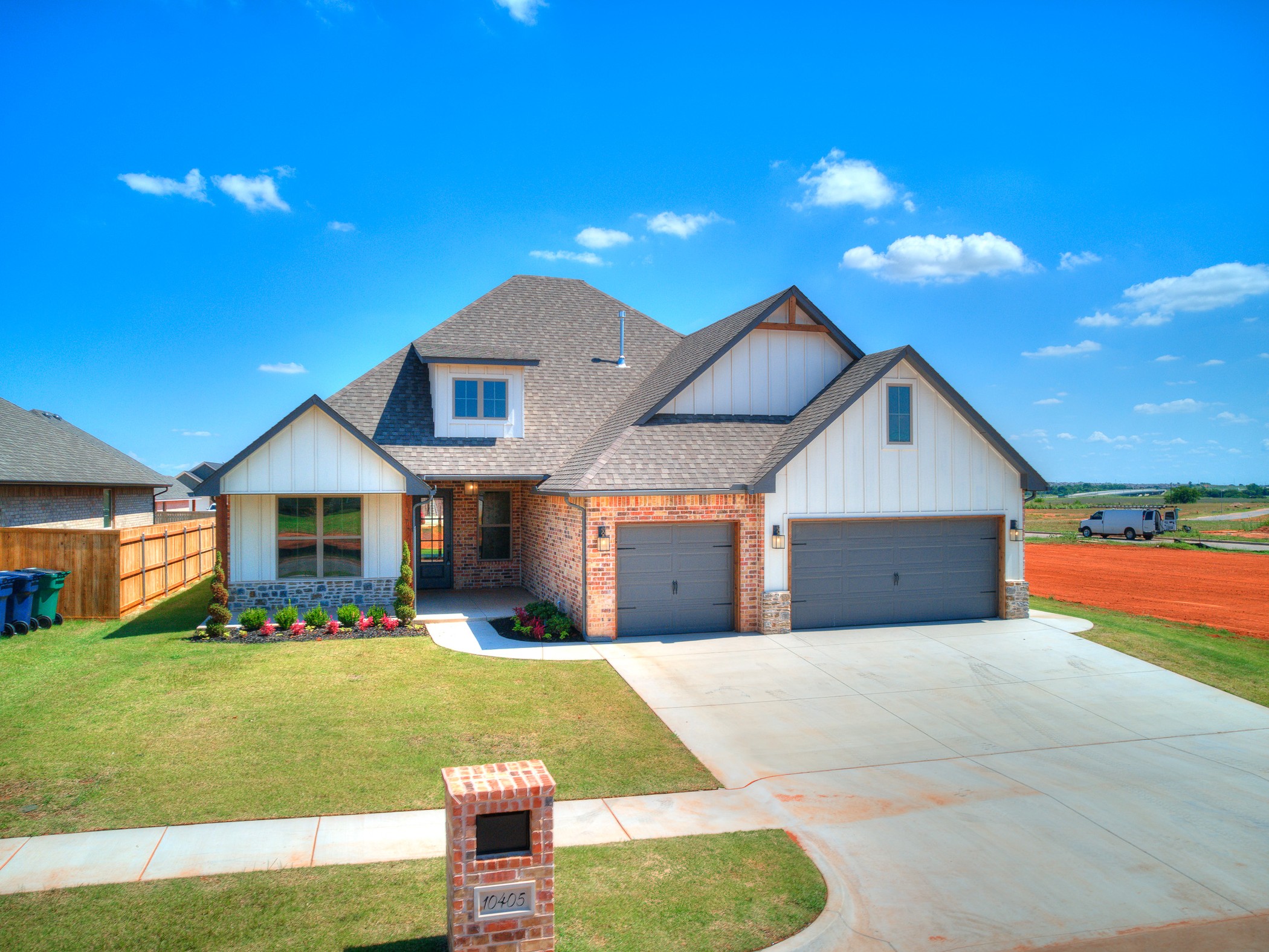 This 2,308 sq. ft. custom home in Mustang features four bedrooms plus a study, three full bathrooms, and a spacious open-concept design.